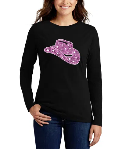 Women's Word Art Cowgirl Hat Long Sleeve T-shirt In Black