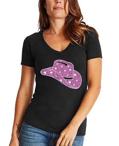 Women's Word Art Cowgirl Hat V-neck T-shirt In Black