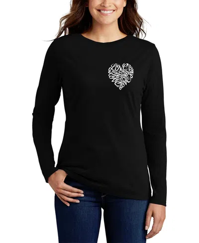 Women's Word Art Cursive Heart Long Sleeve T-shirt In Black