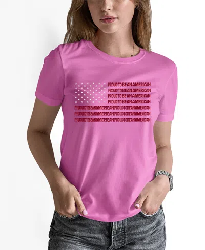 Women's Word Art Proud To Be An American T-shirt In Pink