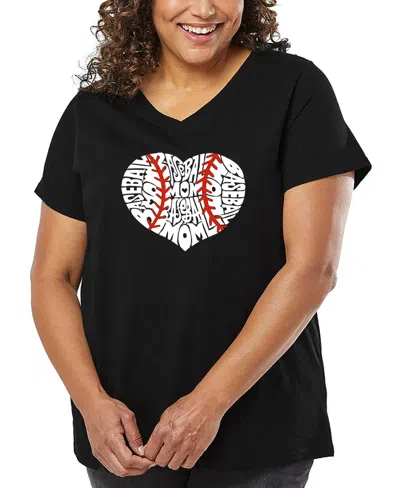 Plus Size Baseball Mom Word Art V-neck T-shirt In Black