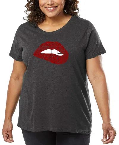 Plus Size Brooklyn Lips Word Art T-shirt In Gray