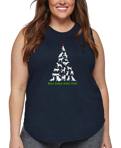 Plus Size Here Comes Santa Paws Word Art Tank Top In Blue