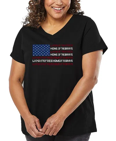 Plus Size Land Of The Free American Flag Word Art V-neck T-shirt In Black