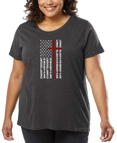 Plus Size Cross Flag Word Art T-shirt In Gray