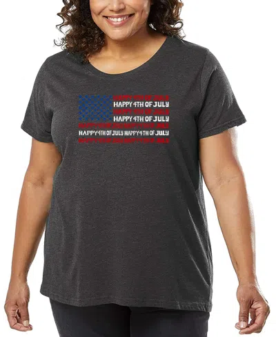 Plus Size Happy 4th Of July Word Art T-shirt In Black