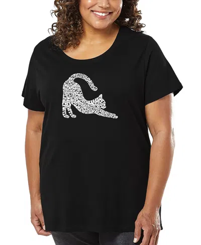 Plus Size Stretching Cat Word Art T-shirt In Black