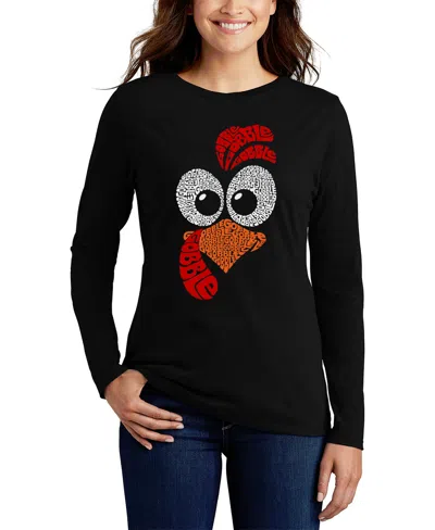 Women's Turkey Face Word Art Long Sleeve T-shirt In Black