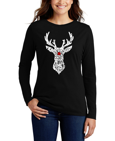 Women's Santa's Reindeer Word Art Long Sleeve T-shirt In Black
