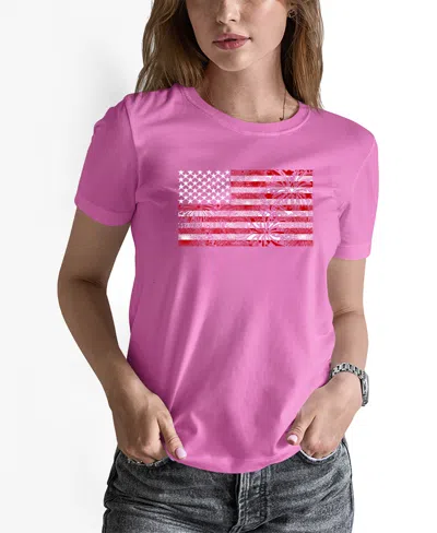 Women's Fireworks American Flag Short Sleeve T-shirt In Pink