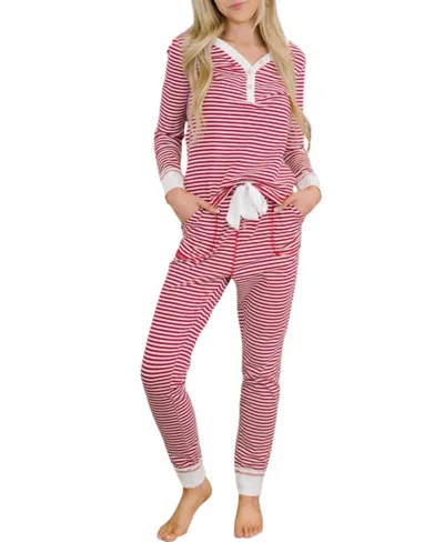Annika Pajama Set In Red Stripe In Pink