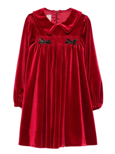 Kids' Velvet Flat Collar Dress In Red