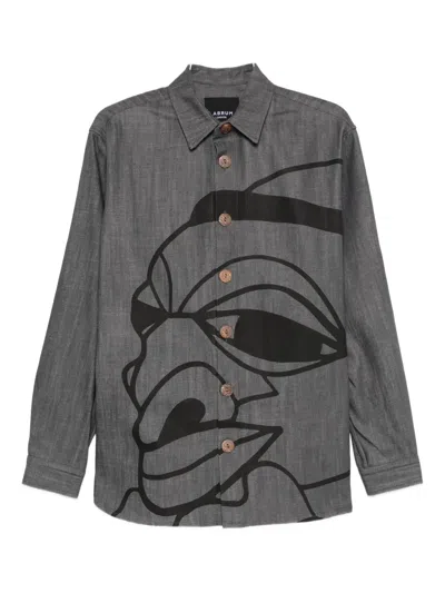 Nomoli-print Denim Shirt In Gray