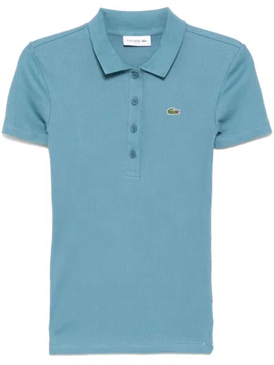Ribbed Collar Cotton Stretch Polo Shirt In Blue