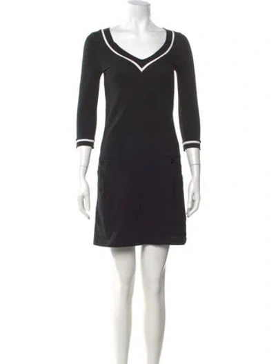 Pre-owned Square Neckline Knee-length Dress In Blue
