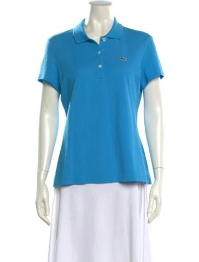 Pre-owned Short Sleeve Top Teal Collared Neckline Tops In Blue