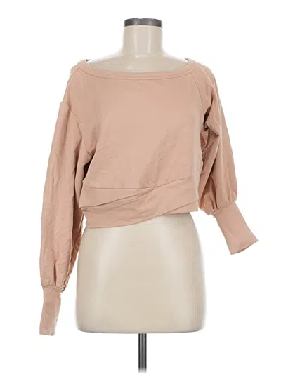 Pre-owned Long Sleeve Top Tan One Shoulder Neckline Tops In Brown