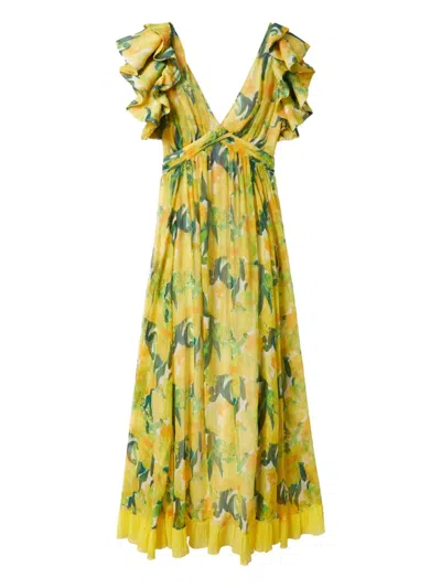 Athena Belted Pleated Printed Silk-chiffon Maxi Dress In Multi