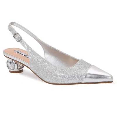 Mesh Satin Rhinestone Ankle Strap Metallic Heel Pump In Silver