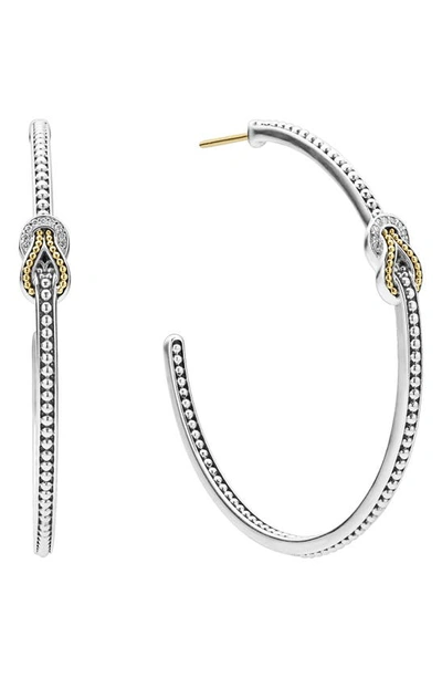 18k Yellow Gold & Sterling Silver Newport Diamond Knot Large Hoop Earrings
