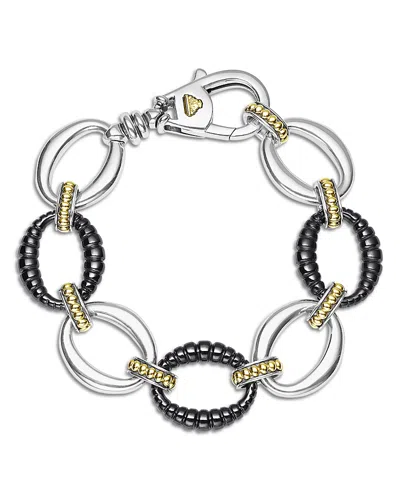 Black Caviar Ceramic Sterling Silver And 18k Gold Bracelet In Black/ Silver