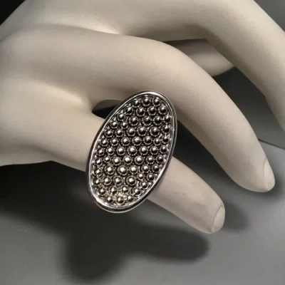 Pre-owned Sterling Silver Bold Caviar Beaded Statement Ring - Size 7