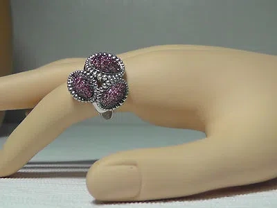 Pre-owned Sterling Silver Muse Pink Sapphire Pave Fluted Oval Ring. Sz 7new$1250 In Silver/pink