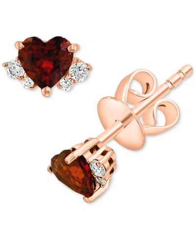 Garnet (3/4 Ct. T.w.) & Diamond (1/10 Ct. T.w.) Heart Stud Earrings In 14k Rose Gold In Burgundy
