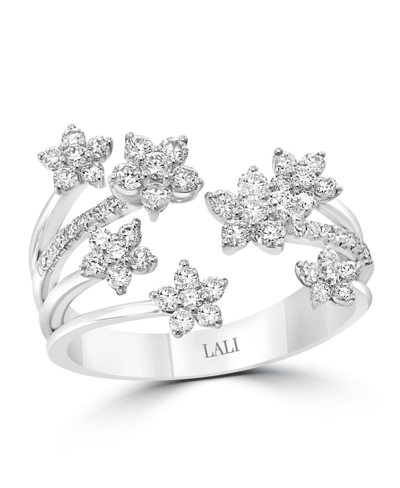 Ruby (3/8 Ct. T.w.) & Diamond (1/6 Ct. T.w.) Five Flower Ring In 14k Gold (also In White Gold) In Blue