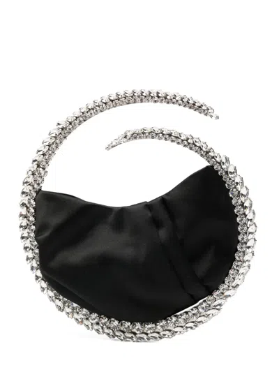Micro Eternity Glitter Satin Crystal Top Handle Bag In Black