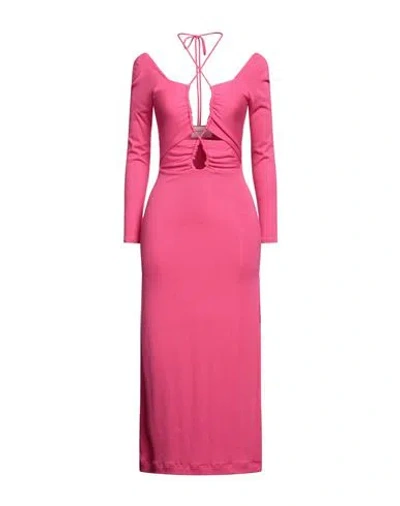 Woman Midi Dress Fuchsia Size L Cotton In Pink