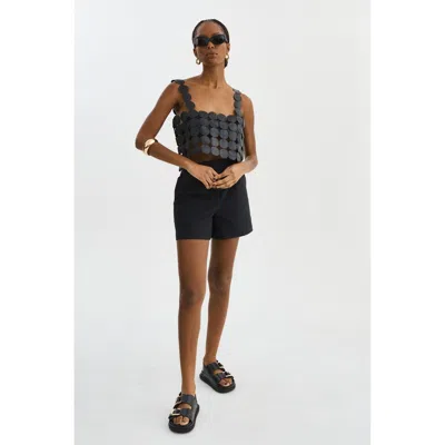 Hasna Faux Leather Cropped Top In Black