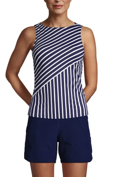 High Neck Upf 50 Modest Tankini Top Swimsuit In Deep Sea Mixed Diagonal Stripe