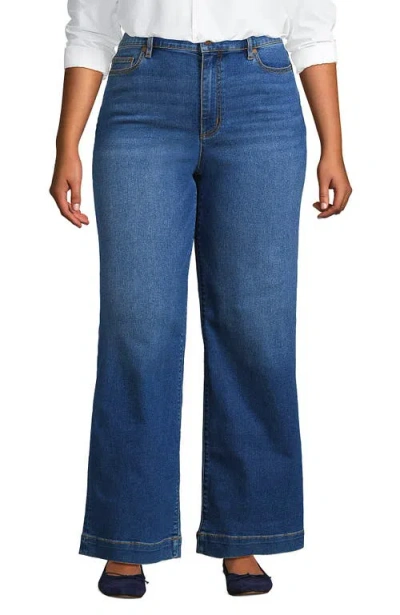 Plus Size Mid Rise Denim Wide Leg Ankle Jeans In Breeze Blue Wash