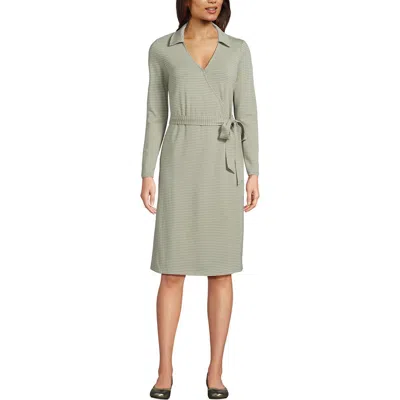 Cotton Modal Collared Wrap Dress In Green