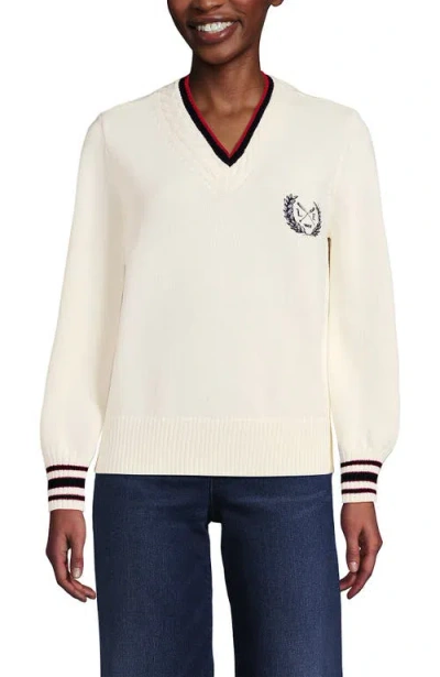 Relaxed Supima Cotton Long Sleeve V-neck T-shirt In Ivory/black Breton Stripe