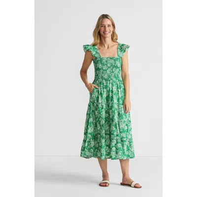 Chambray Smocked Dress With Ruffle Straps In Vibrant Clover Romantic Floral