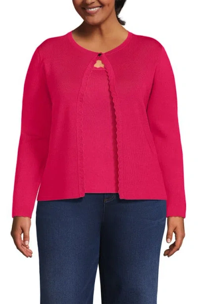 Plus Size Blend Scallop Edge Fitted Cardigan Sweater In Berry Rouge