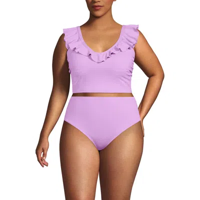Pique Ruffle Tankini Top And High Waisted Bottom Swimsuit Set In Pink