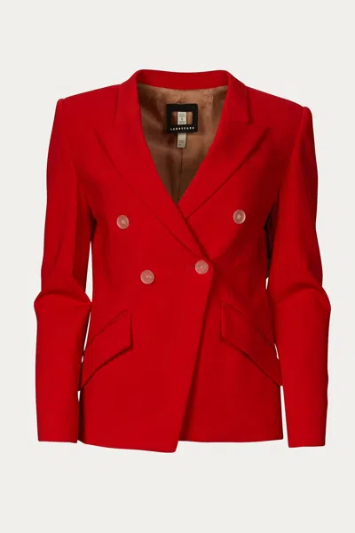 Super Matte Jersey Fitted Double-breasted Blazer In Coral In Red