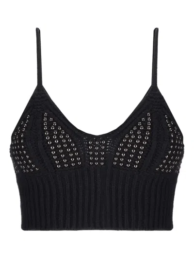 Embellished Knitted Top In Black