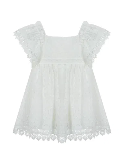 Babies' Bow-embellishment Floral-embroidery Dress In Blue