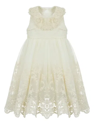 Babies' Floral-embroidered Tulle Dress In White