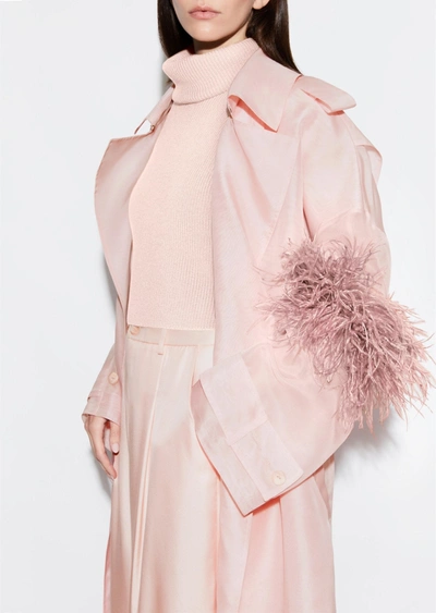 Satin Caftan With Feathers In Sand