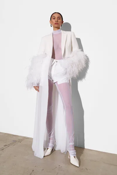 Lightweight Jersey Off The Shoulder Top With Feathers In Black