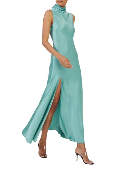 Satin Drape Neck Sleeveless Dress In Sea Green