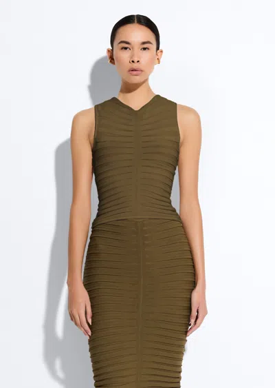 Viscose Wide Ribbed Tank Top In Dark Olive