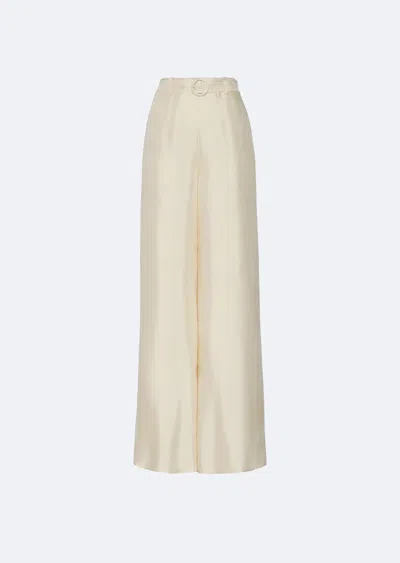 Silky Twill High Waisted Belted Wide Leg Pant In Cream