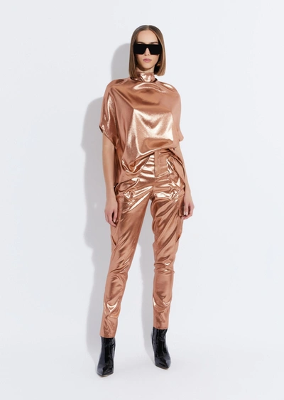 Metallic Jersey One Shoulder Dress With Feathers In 10