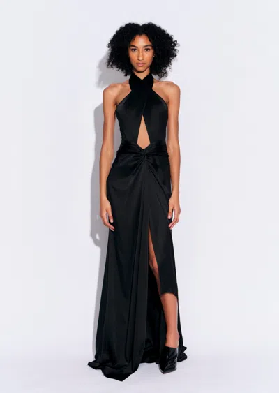 Coated Jersey One Shoulder Rouched Gown In Ink